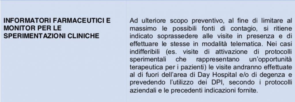 Anche a seguito di approfondimento intercorso con i collegi universitari e ospedalieri di oncologia operanti nel territorio nazionale, al fine del massimo contenimento della possibile trasmissione dei casi infetti tra i pazienti, i visitatori e il personale sanitario, si ravvisa una maggiore necessità di tutelare i pazienti e gli operatori delle strutture di oncologia