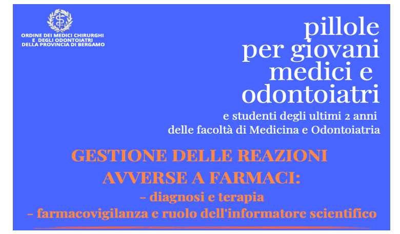 A Bergamo presso l’Ordine dei Medici della provincia si terrà il convegno dal titolo “Gestione delle Reazioni Avverse ai Farmaci” – Diagnosi, terapia, farmacovigilamza e ruolo dell’informatore scientifico.