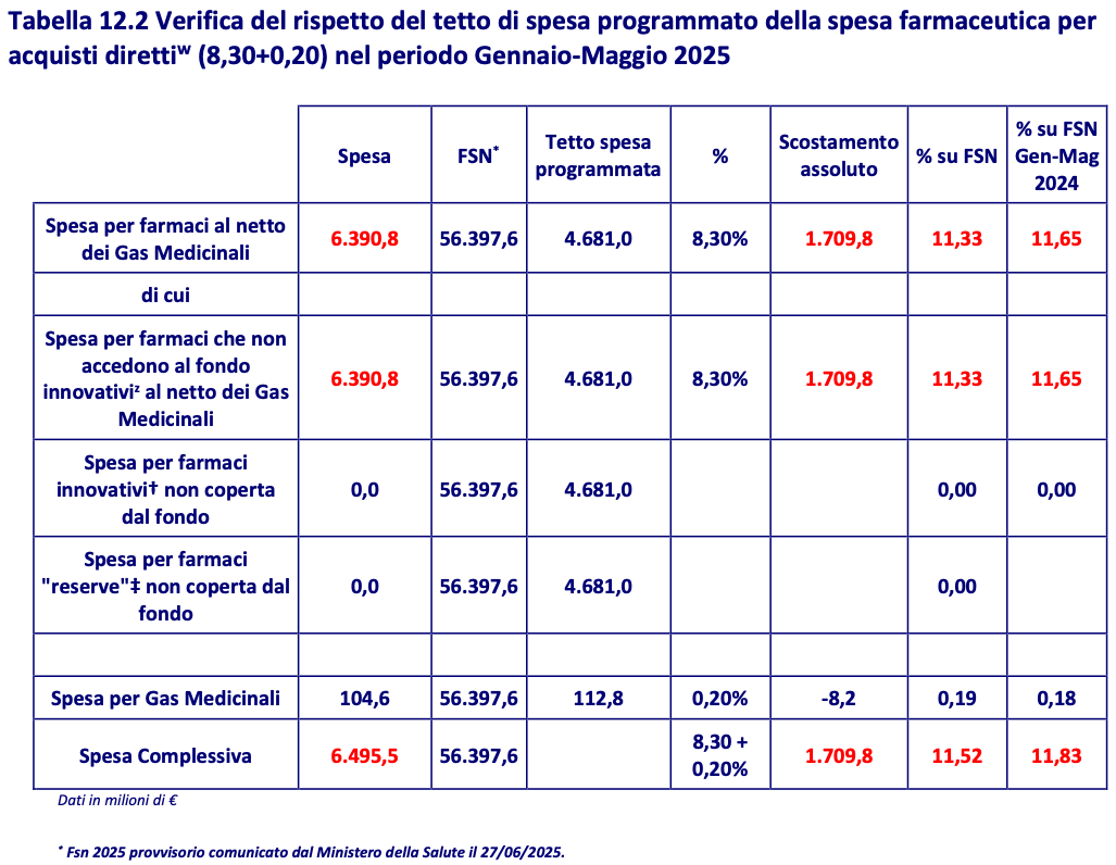 - · il tetto programmato della spesa farmaceutica per acquisti diretti dell’8,30%, calcolato sul FSN 2025 provvisorio, è pari a 4.681,0 mln di €;
