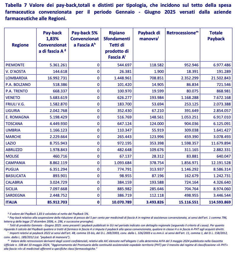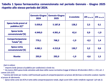 AIFA. Spesa farmaceutica Gennaio Giugno 2025