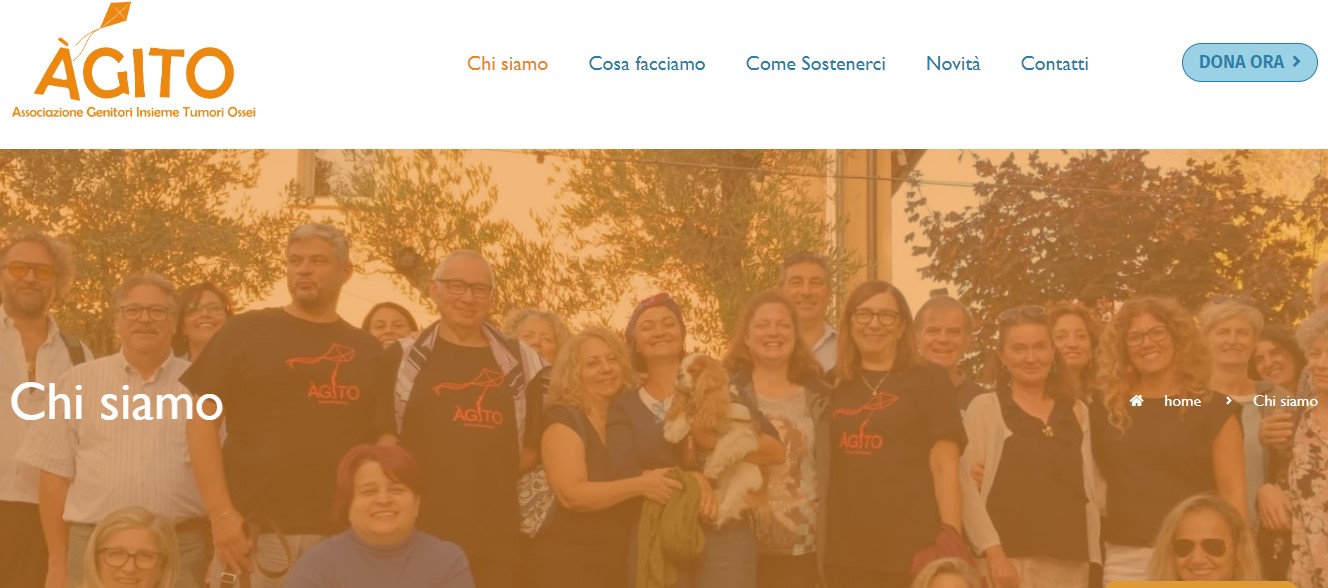 AGITO, un’Associazione di volontariato, convenzionata con l’Istituto Ortopedico Rizzoli, fondata e gestita da genitori di ragazzi colpiti da sarcoma osseo con l’obiettivo di portare consapevolezza su queste patologie, di sostenere la ricerca clinica e di migliorare la qualità della vita dei pazienti. Nata nel 2019 AGITO mette al servizio della comunità l’esperienza maturata in ospedale come destinatari dei servizi ed è diventata un interlocutore importante per i bisogni dei pazienti e dei familiari. Durante questi quattro anni, diversi sono i progetti che sono stati realizzati all’interno dell’Istituto Ortopedico Rizzoli fra i quali un laboratorio settimanale di ceramica e uno di arte-terapia, acquisti di elettrodomestici e di rifornimenti per la cucina a uso dei pazienti ricoverati e donazioni di strumentazioni per il centro di ricerca sui sarcomi nonchè un importante supporto al servizio di psico-oncologia presso il reparto di Osteoncologia, Sarcomi dell’osso e dei tessuti molli, e Terapie Innovative, ovvero il reparto dove viene erogato il trattamento farmacologico. AGITO è federata FIAGOP, Federazione Italiana delle Associazioni di Genitori e Guariti Oncoematologia Pediatrica.