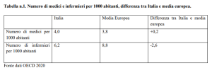In sintesi, dal confronto con le medie EU emerge come il personale sanitario italiano, rapportato alla popolazione, è caratterizzato da un numero complessivo di medici congruo e da un numero di infermieri insufficiente.