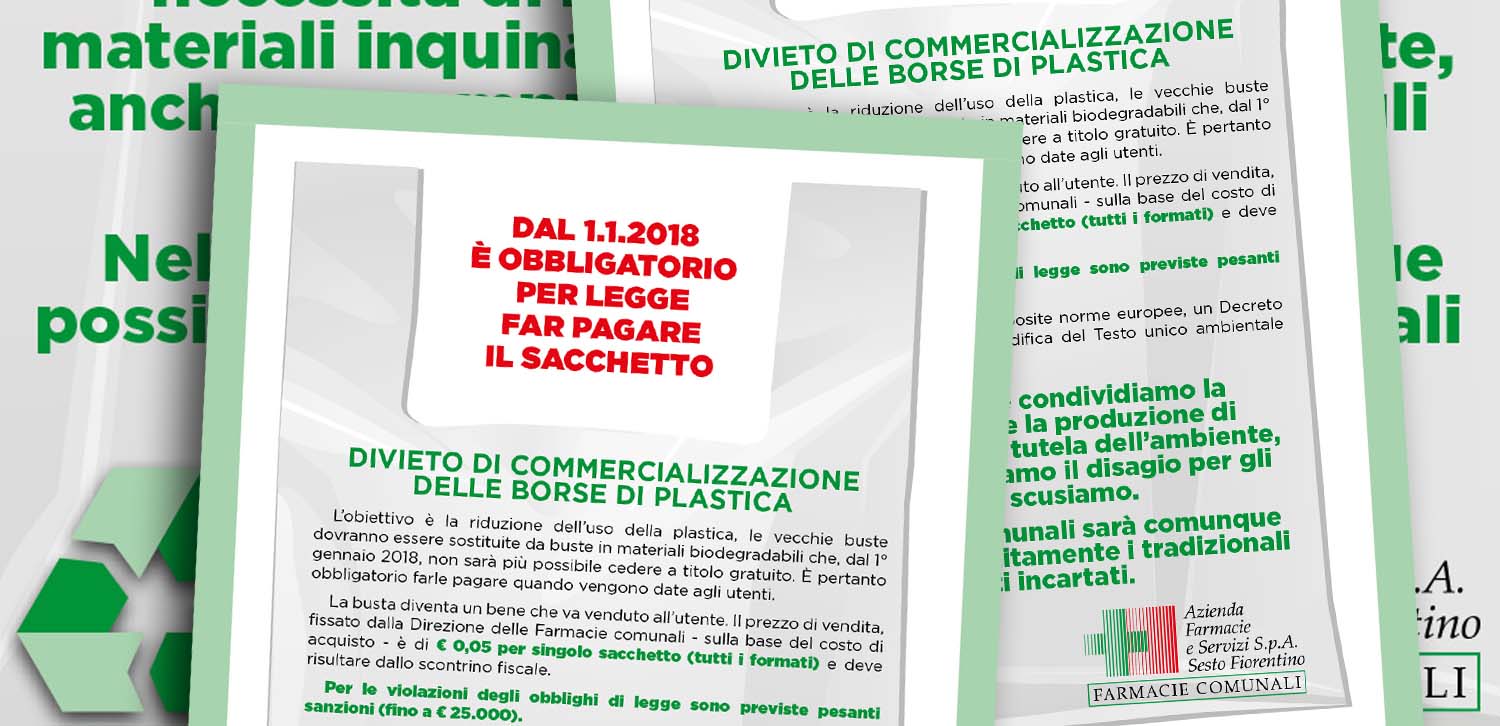 L’avviso potrà essere affisso di fronte al banco o nelle vicinanze della cassa e mette nel dovuto risalto il fatto che l’addebito del sacchetto non dipende da una scelta della farmacia ma deriva da un preciso obbligo di legge: «Per ridurre l’utilizzo delle buste di plastica» recita il testo della locandina «il decreto-legge 91/2017, convertito dalla legge 123/2017, stabilisce che anche le buste biodegradabili e compostabili devono essere pagate dal cittadino. E il costo del sacchetto deve essere obbligatoriamente riportato sullo scontrino fiscale».