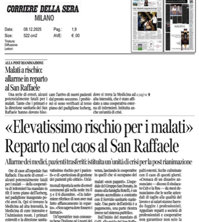 Il caos in uno dei reparti più delicati è la conseguenza, secondo la rappresentanza sindacale unitaria interna, ma anche del responsabile di turno alla direzione sanitaria, dell’affidamento in appalto dei servizi infermieristici a una cooperativa esterna. Daniela Rottoli, una delle rappresentanti sindacali, e la coordinatrice della Rsu, Margherita Napoletano, stanno preparando la denuncia penale che, come hanno annunciato, nelle prossime ore sarà consegnata al commissariato milanese di Lambrate. La decisione del Gruppo San Donato, al quale appartiene il San Raffaele, di non applicare il contratto nazionale per gli infermieri del settore pubblico – una differenza di stipendio tra 300 e 400 euro in meno al mese – sta provocando la fuga del personale.