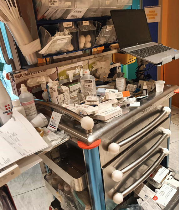 “Condizioni del carrello delle urgenze lato Est precarie. Anche dopo aver fatto presente la cosa al personale infermieristico, al termine della guardia, lo stesso non risultava ripristinato”. riferisce il medico.