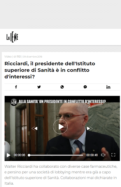 Dopo l’inchiesta della trasmissione Le Iene dedicata ai conflitti di interesse del presidente Iss, Walter Ricciardi, il Codacons presenta oggi una  diffida urgente all’Anac e pubblica tutti i rapporti intercorsi tra Ricciardi e le aziende farmaceutiche produttrici di vaccini.