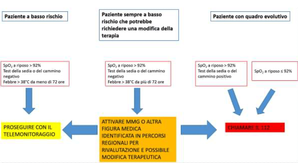Se la saturazione dell’ossigeno scende sotto il 92% valutare o ricovero e ossigenoterapia a casa.