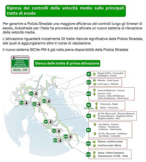 Da oggi, su 22 tratte autostradali, sono di nuovo attivi i rilevatori di velocità media comunemente conosciuti come Tutor e ora denominati SICVe-PM. Di certo un ridimensionamento, considerando che prima il vecchio sistema copriva quasi 2.500 km di strada, ma la Polizia stradale afferma che presto si aggiungeranno anche altri tratti. Andiamo allora a vedere nel dettaglio e in maniera interattiva dove, attualmente, la velocità massima consentita sarà controllata elettronicamente.