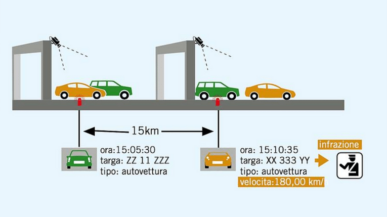 Tutti i veicoli vengono registrati da telecamere montate sulle “porte” (gli archi metallici che passano sopra la carreggiata e che già ospitavano il Tutor): una volta in entrata e una volta in uscita. La distanza percorsa divisa per il tempo impiegato a percorrerla fornisce il dato della velocità media, che non deve essere superiore al limite autostradale prescritto per quel tratto (quindi non per forza 130 km/h), scarto incluso.