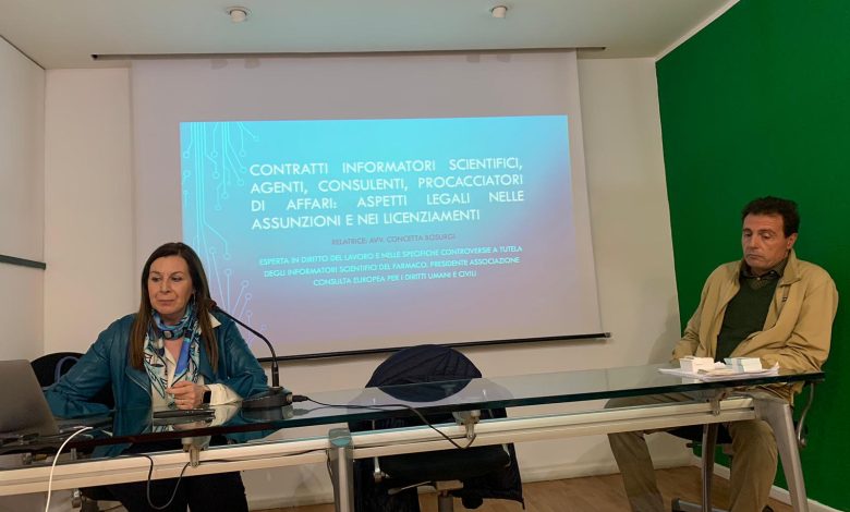 Il primo incontro dal titolo “CONTRATTI INFORMATORI SCIENTIFICI, AGENTI, CONSULENTI, PROCACCIATORI DI AFFARI: ASPETTI LEGALI NELLE ASSUNZIONI E NEI LICENZIAMENTI” è stato condotto dall’avvocato Concetta Bosurgi. L’avvocato Bosurgi è un’esperta in diritto del lavoro, specializzata nelle controversie a tutela degli informatori scientifici del farmaco e di categorie affini, nonché presidente della Consulta Europea per i diritti umani e civili.