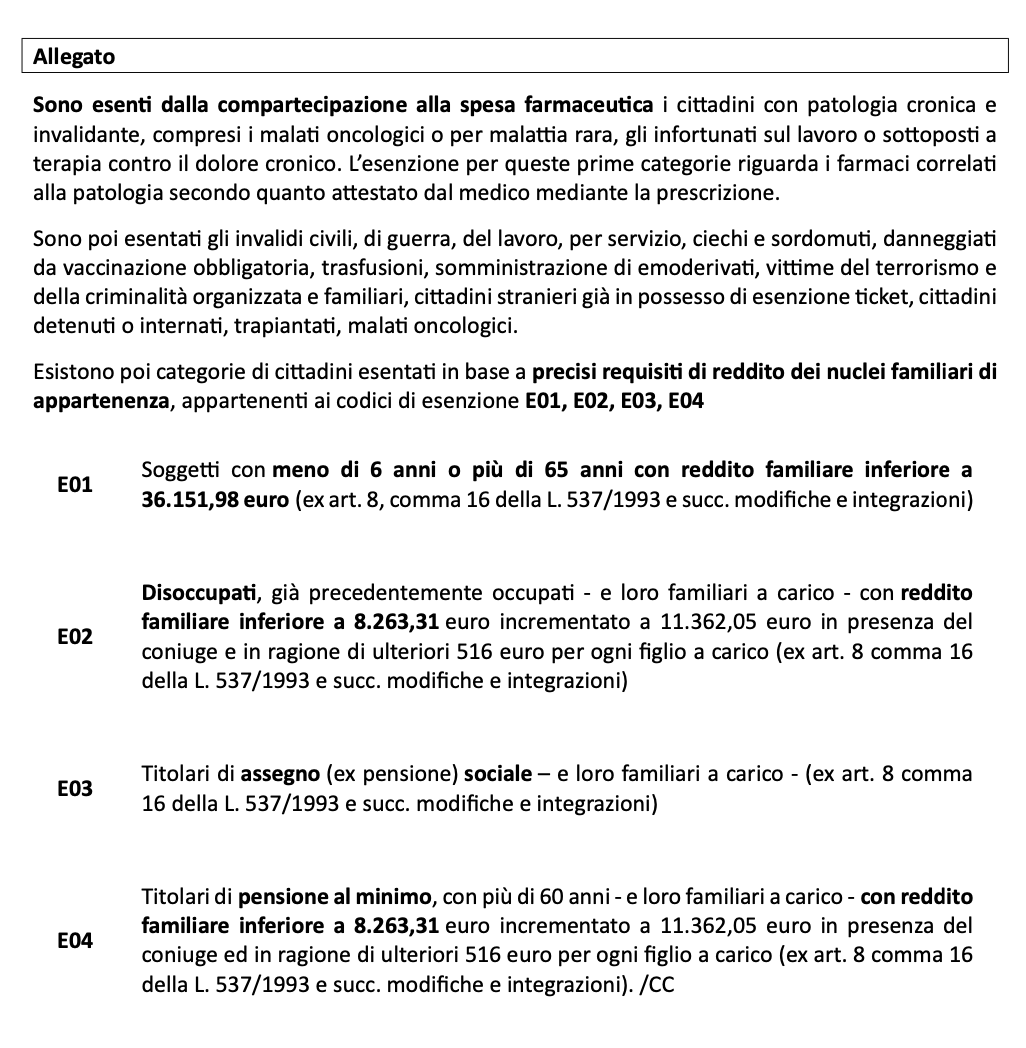 Al cittadino non esente chiesta la compartecipazione di 2,20 euro a confezione di medicinale, fino a un massimo di 4 euro a ricetta. Le prime visite specialistiche per le famiglie con almeno due figli a carico resteranno gratuite fino ai 14 anni compiuti.