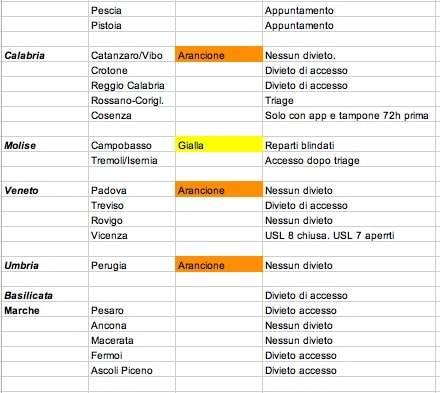 Regione Valle D’Aosta, San Marino dati non pervenuti