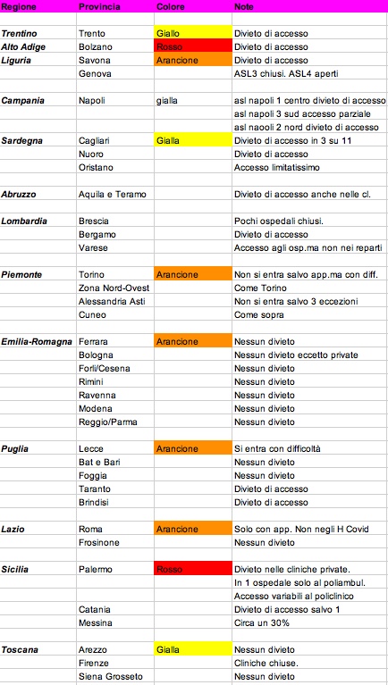 Regione Valle D’Aosta, San Marino dati non pervenuti