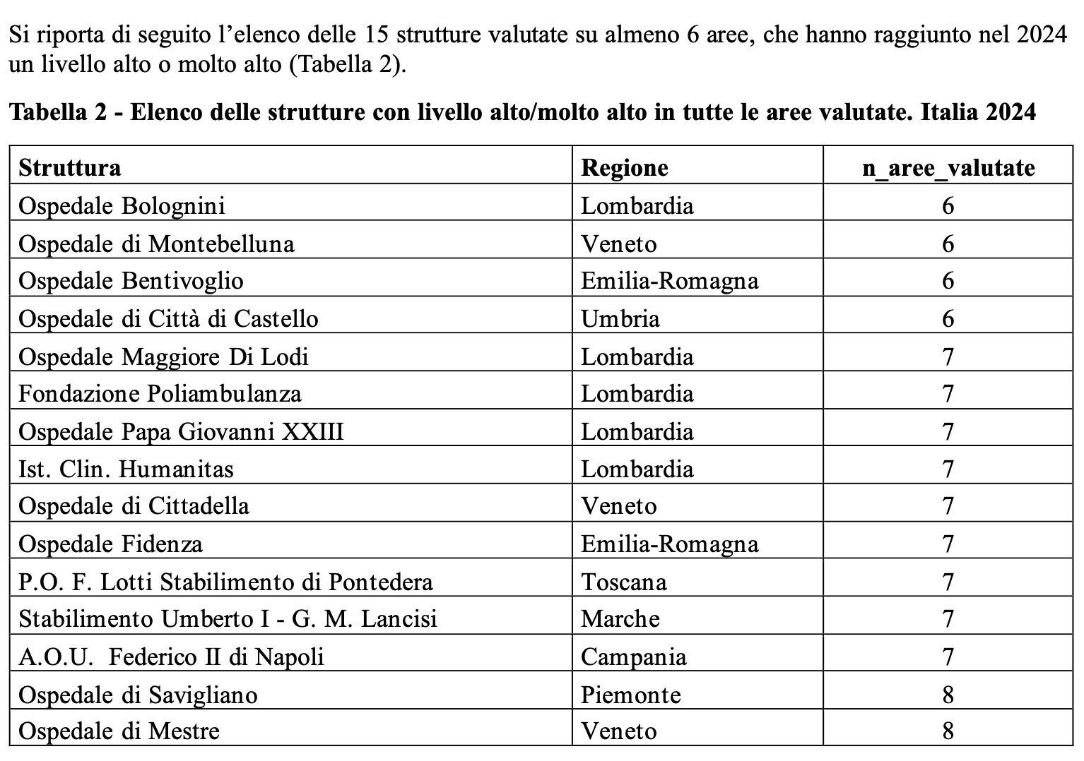 In generale quasi 2 ospedali su 10 sono rimandati per la qualità dell’assistenza. Sono infatti state individuate ben 197 strutture da sottoporre ad un processo di revisione tramite audit. Lo scorso anno erano 239.