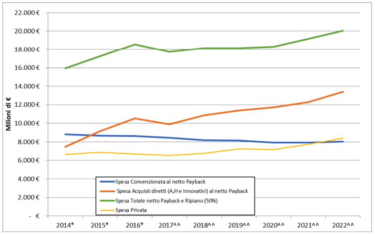 The analysis of the trend in pharmaceutical expenditure incurred by the NHS shows an increasing trend in 2022, after a period of substantial stability in spending paid by the NHS, which was observed in particular in recent years (2019 - 2021) corresponding to the pre- and post pandemic.