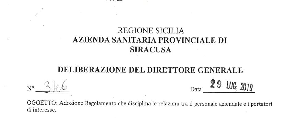 Il presente regolamento disciplina, ai sensi della legge 9 gennaio 2019, n.3, nonché ai sensi dell’art.1, comma 44, legge 6 novembre 2012, n.190,i rapporti tra il personale dell’Azienda Sanitaria Provinciale di Siracusa e i