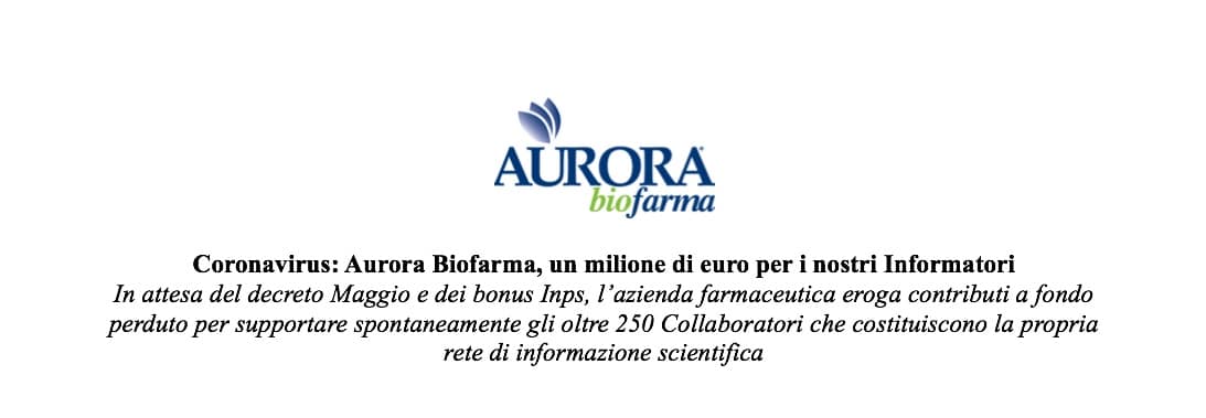 «Quanto fatto è per noi è un atto dovuto per proteggere quella fascia di lavoratori autonomi priva di tutele contrattuali per cui sentiamo l’obbligo morale di garantire innanzitutto una stabilità economica – sono le parole l’Amministratore Delegato di Aurora Biofarma Nicola Di Trapani – E poi c’è il filone della sicurezza del lavoro. Per questo confermiamo le assunzioni in programma e gli impegni presi anche con chi è entrato in Aurora Biofarma ad inizio Marzo lasciando un altro impiego, oppure si trova oggi fermo in malattia, gravidanza o situazioni familiari difficili. Si tratta di un investimento importante, un milione di euro erogato spontaneamente in questi mesi di lockdown, pensato per proteggere coloro che in azienda non sono solo numeri ma persone».