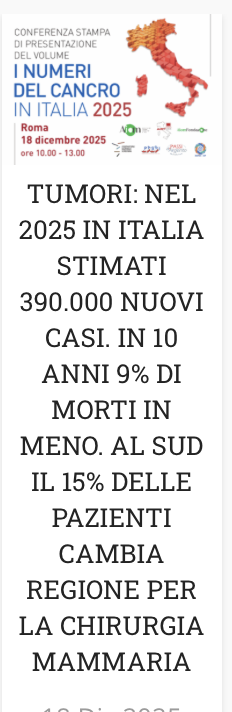 2. I numeri del cancro in Italia 2025”, AIOM, AIRTUM, Fondazione AIOM, ONS, PASSI, PASSI d’Argento, SIAPeC