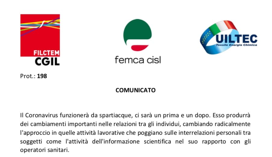 In assenza di un indirizzo governativo univoco, le Regioni hanno deliberato con libero arbitrio, che in alcuni casi, hanno vietato qualsiasi tipo di contatto con il medico, senza distinzioni. Tutto ciò ha generato pressioni da parte di alcune aziende, nei confronti dei lavoratori interessati, mettendo così in difficoltà lo svolgimento dell’informazione scientifica che deve scegliere tra restrizioni normative e le pressioni aziendali.