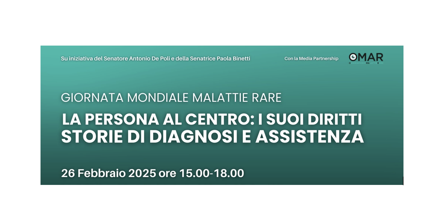 SAVE THE DATE – Convegno: Giornata Mondiale Malattie Rare. La persona al centro: i suoi diritti. Storie di diagnosi e assistenza | 26 febbraio 2025 ore 15.00, Roma