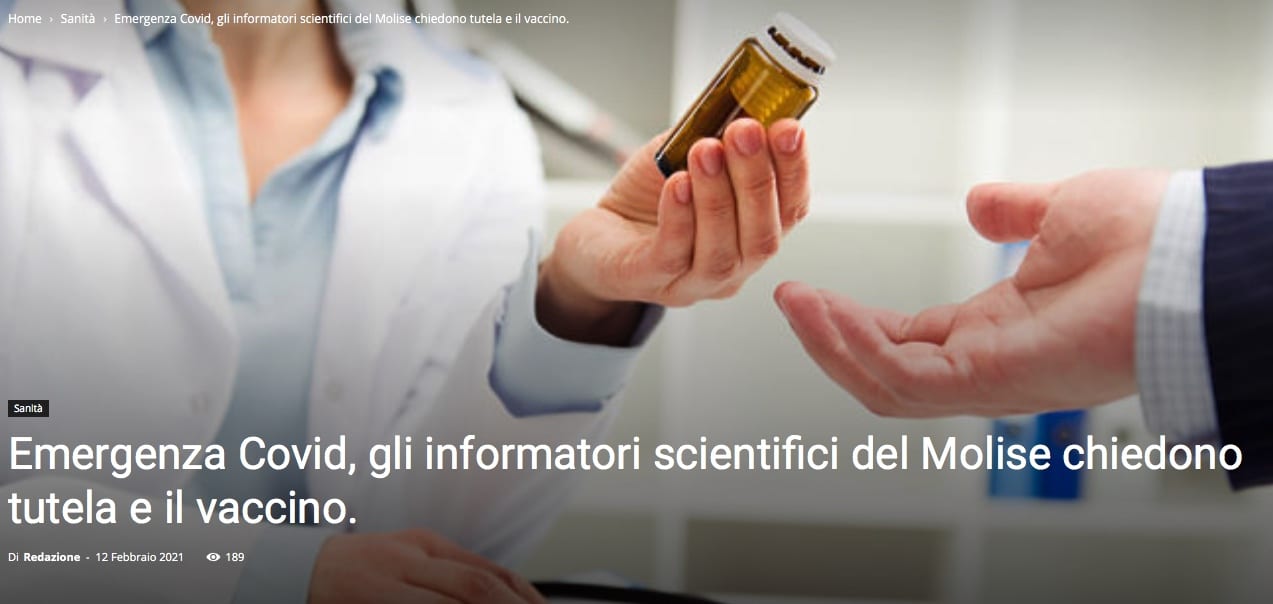 Emergenza Covid, gli informatori scientifici del Molise chiedono tutela e vaccino Fedaiisf Molise invia una lettera a medici e istituzioni in cui si chiede l'inserimento delle categorie a rischio degli ISF Fedaisf editorial staff 13 February 2021 News della Valle – 12 febbraio 2021