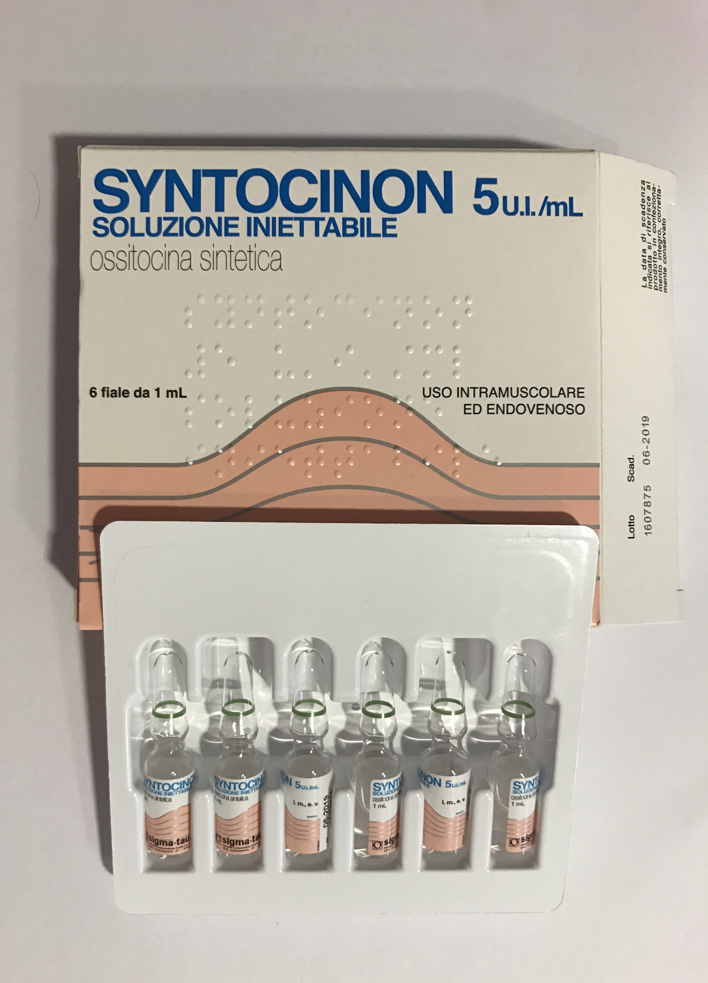 “L’Agenzia Italiana del Farmaco comunica il ritiro dal mercato del lotto n. 190554 del medicinale per uso ospedaliero “SYNTOCINON fiale 5UI/ml 6 fiale” (scadenza marzo 2022). Il ritiro è stato attivato dall’azienda titolare AIC e produttrice Alfasigma dopo una segnalazione riguardante una confezione che riportava nell’astuccio la dicitura errata “SYNACTEN 250 micrograms/ml 5 ampoules” con confezionamento non in lingua italiana, ma con blister, bollino, foglio illustrativo e numero di lotto corrispondenti a quelli autorizzati in Italia per “SYNTOCINON fiale 5UI/ml 6 fiale”. Tale lotto è stato distribuito tra il 17 giugno e il 22 agosto 2019.”