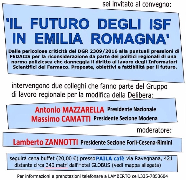 Fedaiisf Forlì Cesena Rimini and Ravenna. “The future of the ISF in Emilia Romagna”. Criticality of regional regulations and right to work Fedaisf editorial staff November 26, 2019
