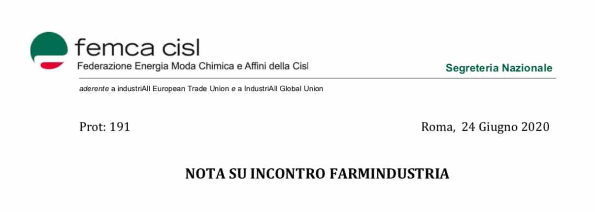 Si è svolto il 23 giugno il previsto incontro con Farmindustria, alla presenza dei Segretari Generali, che fa seguito agli impegni presi nell’incontro del 8 maggio sull’informazione scientifica, dove si è fatto il punto sull’itero settore farmaceutico in merito alla gestione delle attività produttive durante la pandemia, gli effetti dell’attuazione dei protocolli di sicurezza e il monitoraggio degli andamenti organizzativi della fase 2 nelle varie aziende e le prospettive per la ripartenza delle attività.