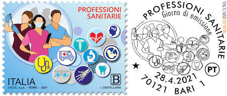 Il francobollo testimone il profondo e sentito ringraziamento delle istituzioni a tutti i professionisti socio-sanitari che nell’anno della pandemia si sono adoperati per il bene della collettività. (IPZS)