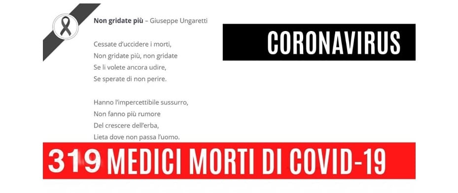 La pandemia causata dal coronavirus ha causato più di 2,5 milioni di malati accertati in Italia, più di 95.000 morti da inizio pandemia per COVID-19. I medici e odontoiatri che hanno lottato contro il virus fino alle estreme conseguenze sono stati 319, all’8 febbraio.