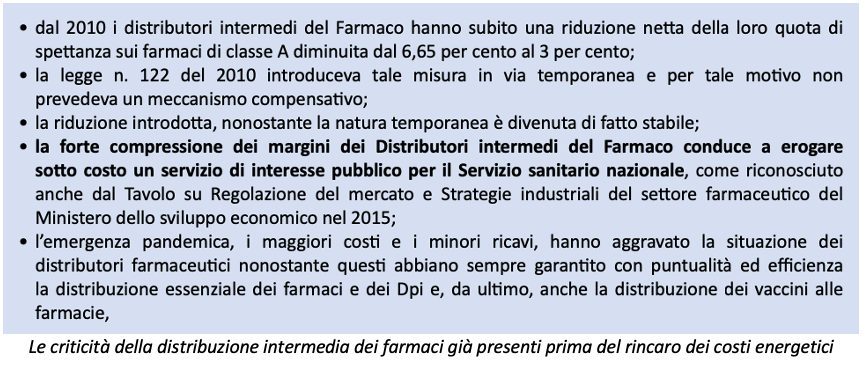 cold chain, the cost of fuel for widespread and timely transport to pharmacies and parapharmacies located throughout the area, even in the most disadvantaged areas to reach, are having a dramatic impact on the economic sustainability of our services".