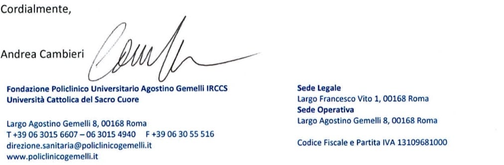 Si ringrazia pertanto per l’attenzione con cui FEDAIISF segue le vicende legate al Gemelli, suggerendo — per il futuro — una maggior e puntuale attenzione alle informazioni prodotte dalla Vostra spettabile Federazione.