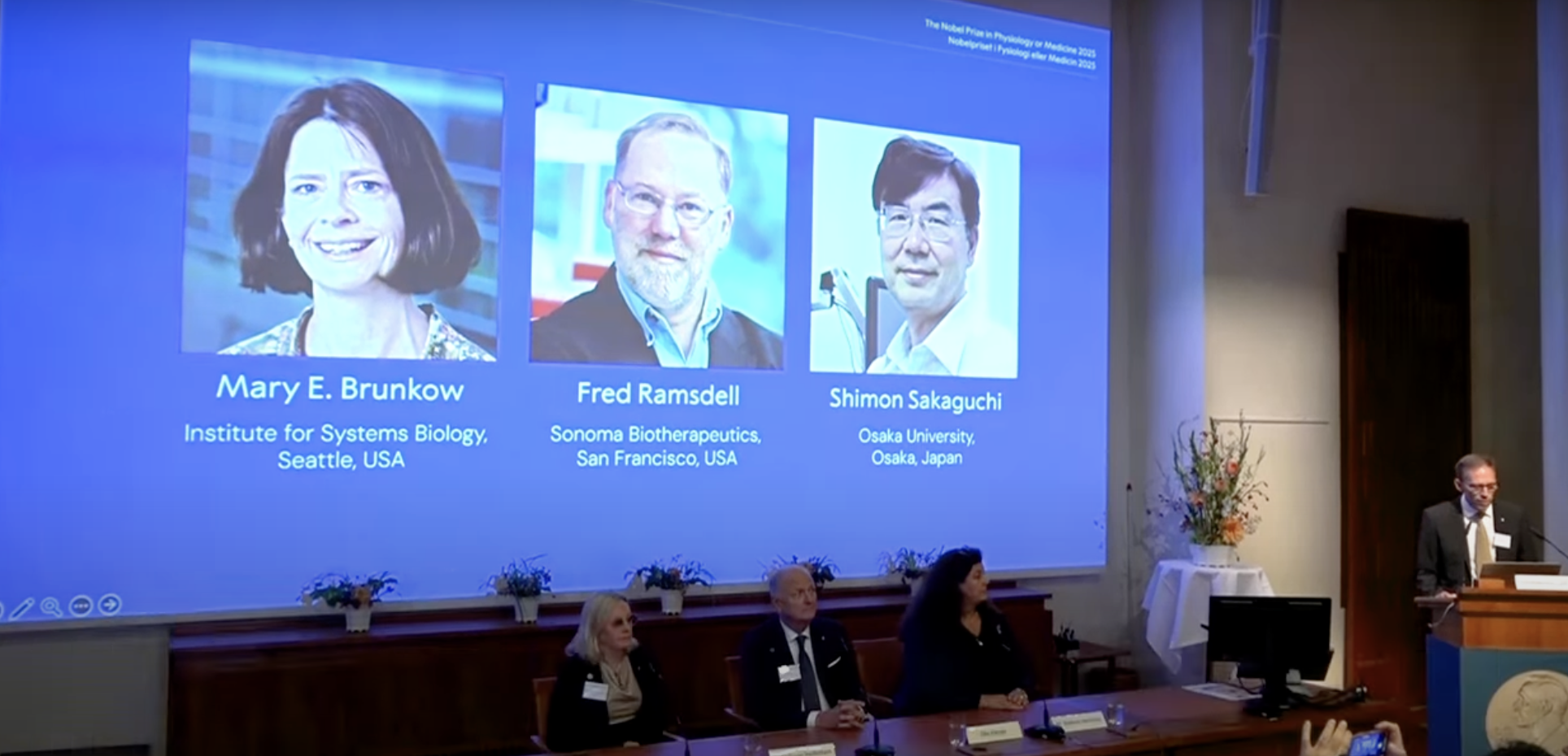 Il riconoscimento va alle loro scoperte relative alla tolleranza immunitaria periferica, ovvero il meccanismo fisiologico che impedisce al sistema immunitario di danneggiare l’organismo mentre lo difende da patogeni esterni. Si tratta di studi che hanno stimolato lo sviluppo di nuovi trattamenti per il cancro e le malattie autoimmuni