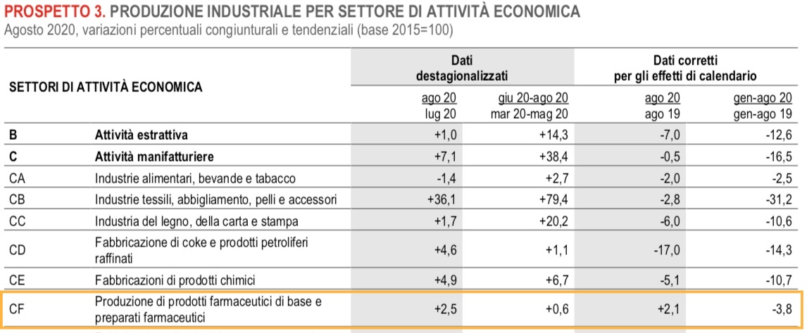 ISTAT. In August industrial production of pharmaceutical products +2.8
