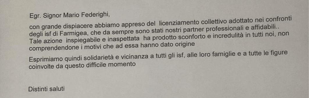 In concomitanza, lunedì dovrebbe arrivare in azienda la prima lettera dell’avvocato dei lavoratori licenziati.
