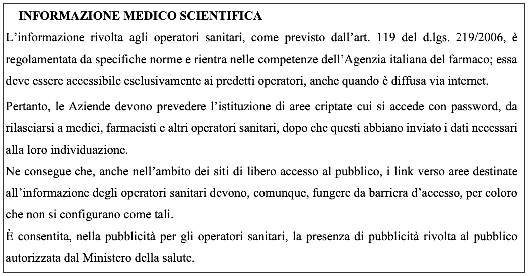 The reference regulatory framework for the advertising of medicinal products remains unchanged, defined by Legislative Decree 219/2006 which identifies fundamental principles, limits, characteristics, minimum content and prohibited content and regulates the procedure for authorizing messages by the Ministry.