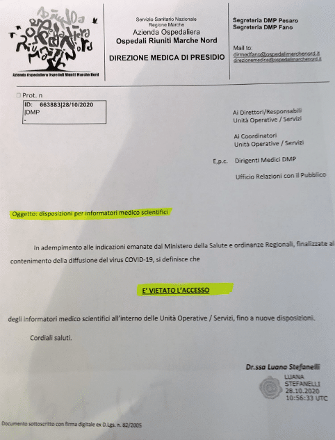 Editor's note: There is no indication from the Ministry of Health or Regional Ordinance that prohibits access to the hospital facilities of the ISF. If access is denied, it is an initiative of the structure, not of the ministry as reported in Annex 9 of the DPCM: