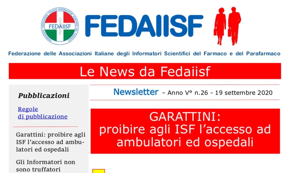 Newsletter Fedaisf. In distribution to the associates the n. 26 of 19 September 2020