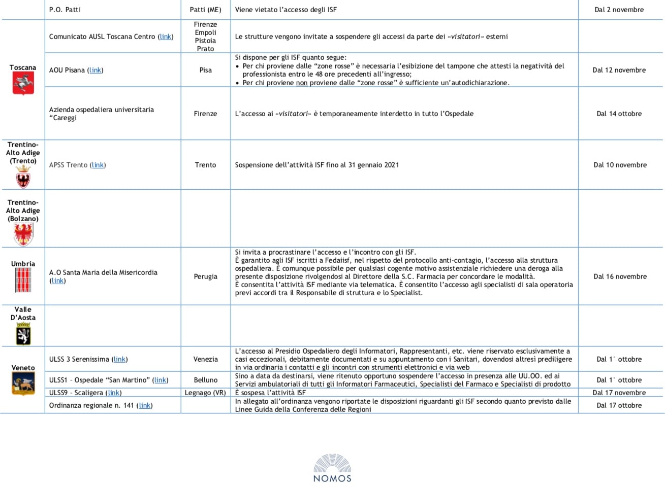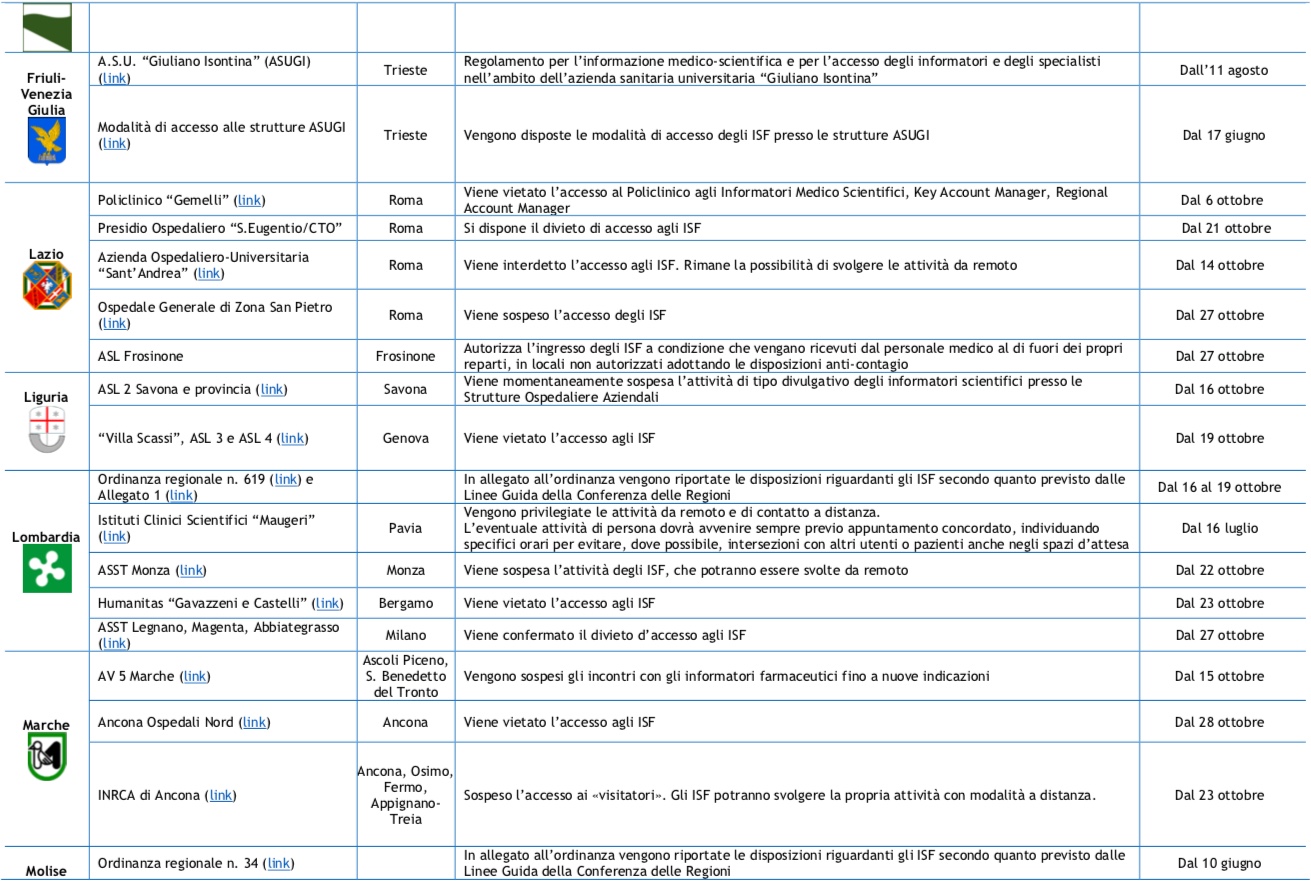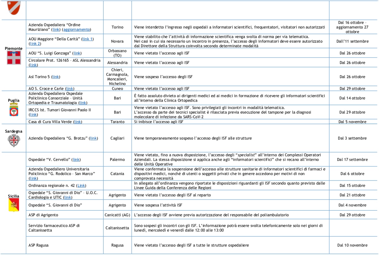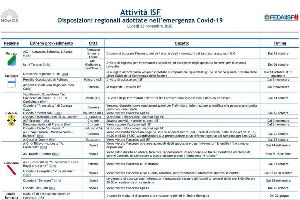 Riportiamo sotto la raffigurazione grafica delle disposizioni regionali sull’attività ISF. Per interagire sui link cliccare: Speciale disposizioni attività ISF – 23 novembre 2020