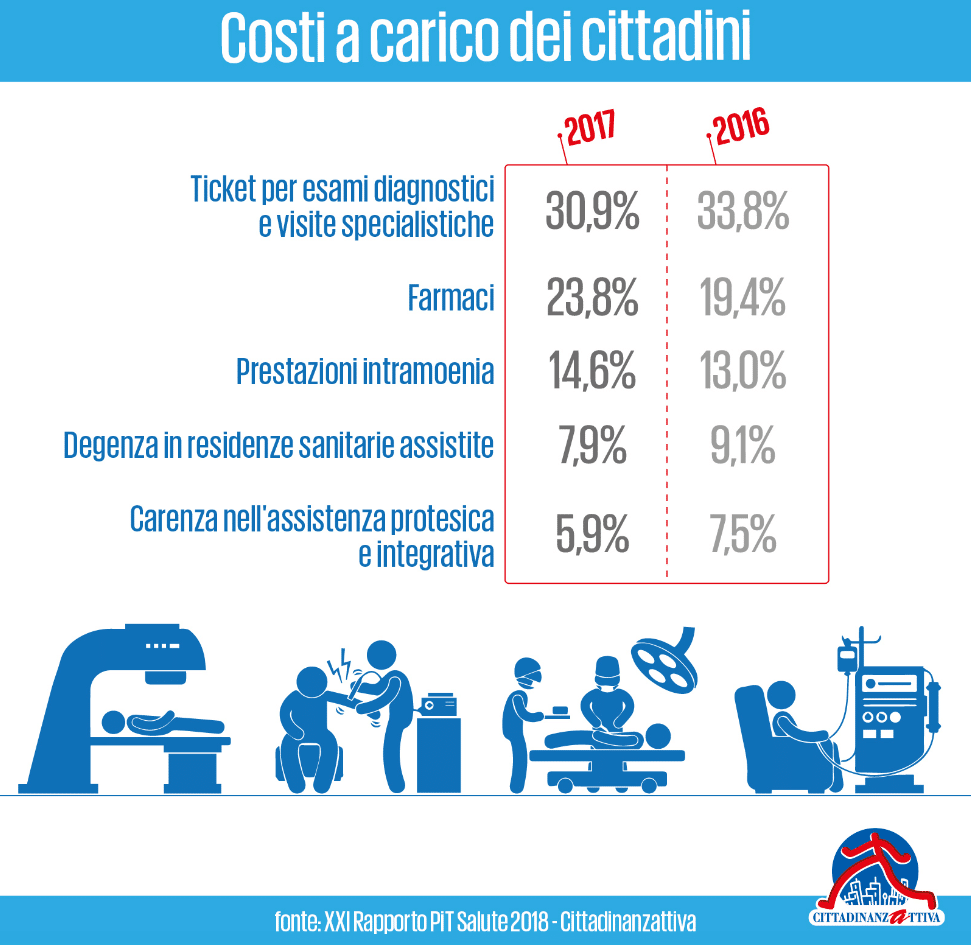 Il costo di un farmaco, per un paziente che fronteggia più patologie in quanto croniche, è una spesa fissa e consistente (che si va a sommare a quelle già vincolanti della vita quotidiana) che i cittadini sentono come normalmente collegata al soggetto che effettua la diagnosi e si occupa dei controlli, cioè il servizio pubblico, ma non è un caso né una falsità il fatto che proprio questi pazienti trovino maggiori – spesso insormontabili – difficoltà, perché il meccanismo delle esenzioni non prende in considerazione la globalità della situazione economica del soggetto. Il discorso si applica anche a quella parte di popolazione economicamente più debole e che gode, ad esempio, di esenzioni parziali per motivi di reddito, disoccupazione o inoccupazione.