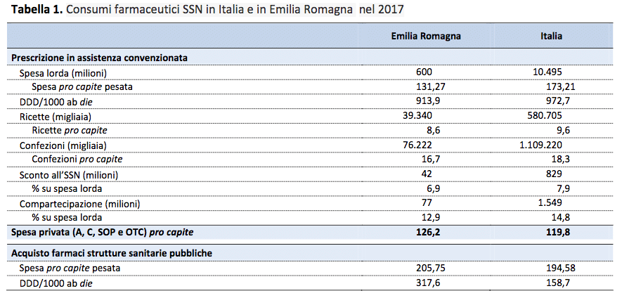 WithNHS pharmaceutical sumi in Emilia Romagna in 2017