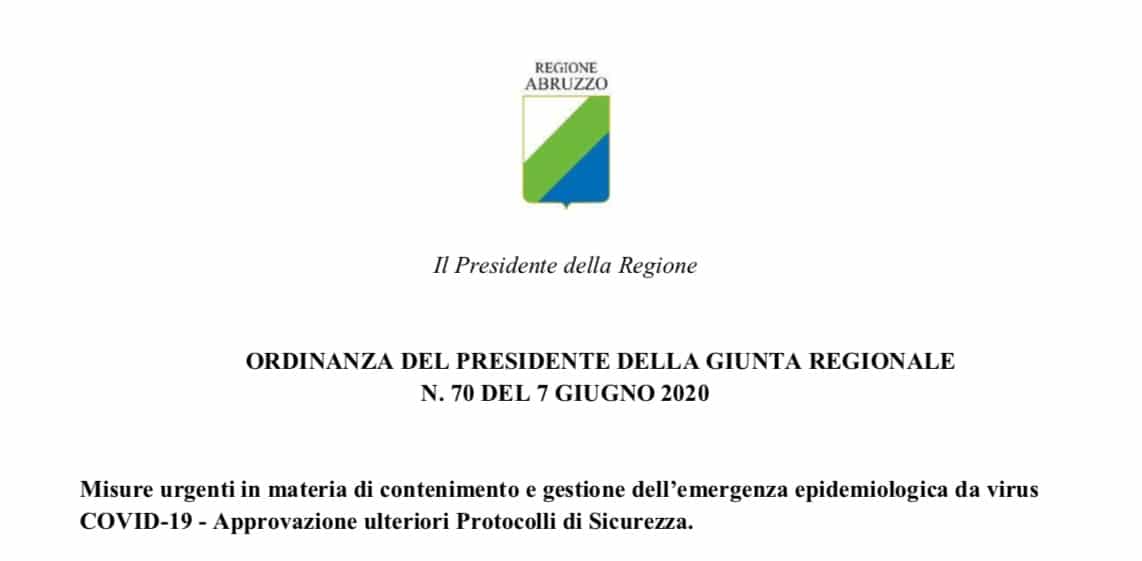 - che i Protocolli di Sicurezza di cui alle Ordinanze n. 62/2020, n. 65/2020, n. 67/2020, n. 68/2020 e n. 69/2020 e il punto 6 dell’Ordinanza n. 60/2020 si intendono superati da quelli corrispondenti, contenuti nell’allegato alla presente;