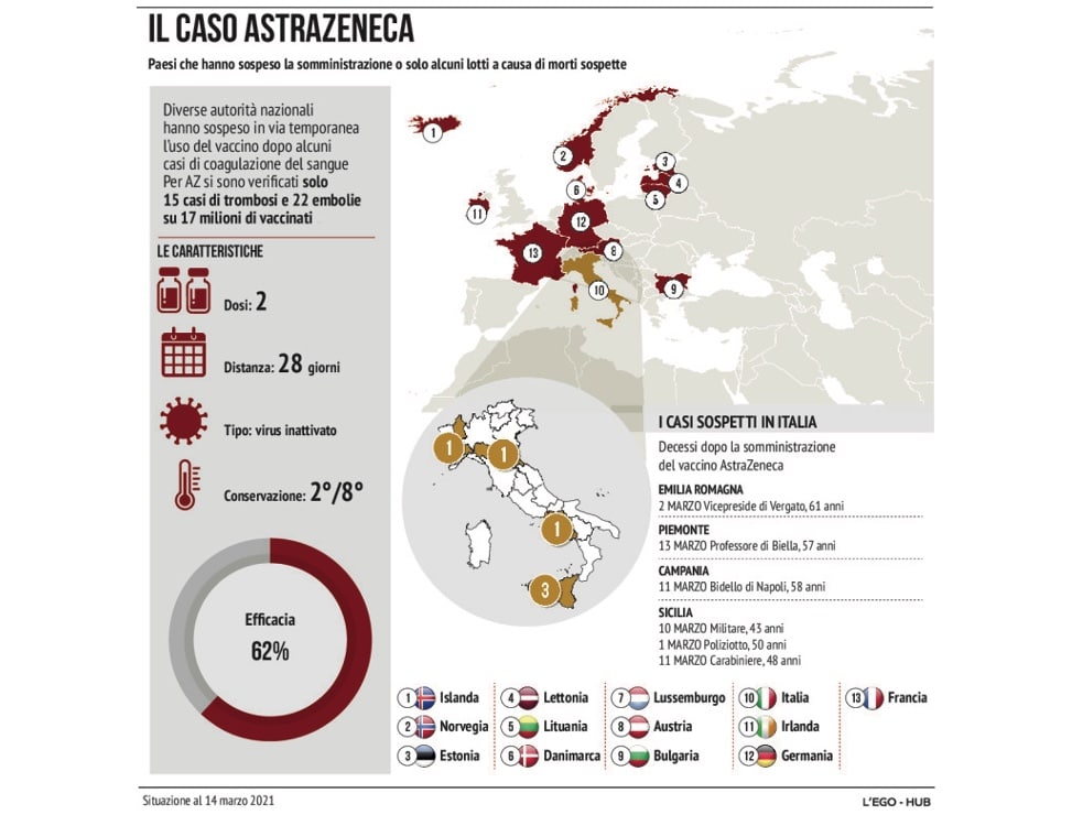 «In terms of public health, each State can decide autonomously on the risks of safety. This is the only criterion that, in the absence of a clear verdict from science, can condition individual regulatory agencies. Yesterday Aifa found itself in this precise situation and had to submit to the decision of the Ministry of Health. The domino effect started in Germany, where one of the regulatory agencies noted that there was a concurrence of similar cases of thrombosis after the vaccine. France claimed to have seen similar cases in retrospect, followed by Spain soon after. In Italy the cases found seem to be different from those highlighted in Germany or France: instead of investigating further, the stop was decided, with all the psychological consequences of the case. Among other things, since the EMA has the possibility of making a comparison between batches in a centralized way, I wonder: why didn't they allow the European body to make the necessary reasoning before throwing the vaccination campaign to skepticisms?»