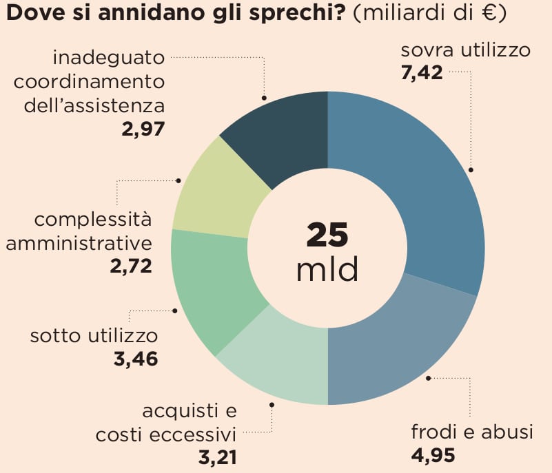 In 2017, the National Health Service wasted over 21 billion euros, almost one euro out of five. The Gimbe Foundation calculated it in its own sustainability report. They come