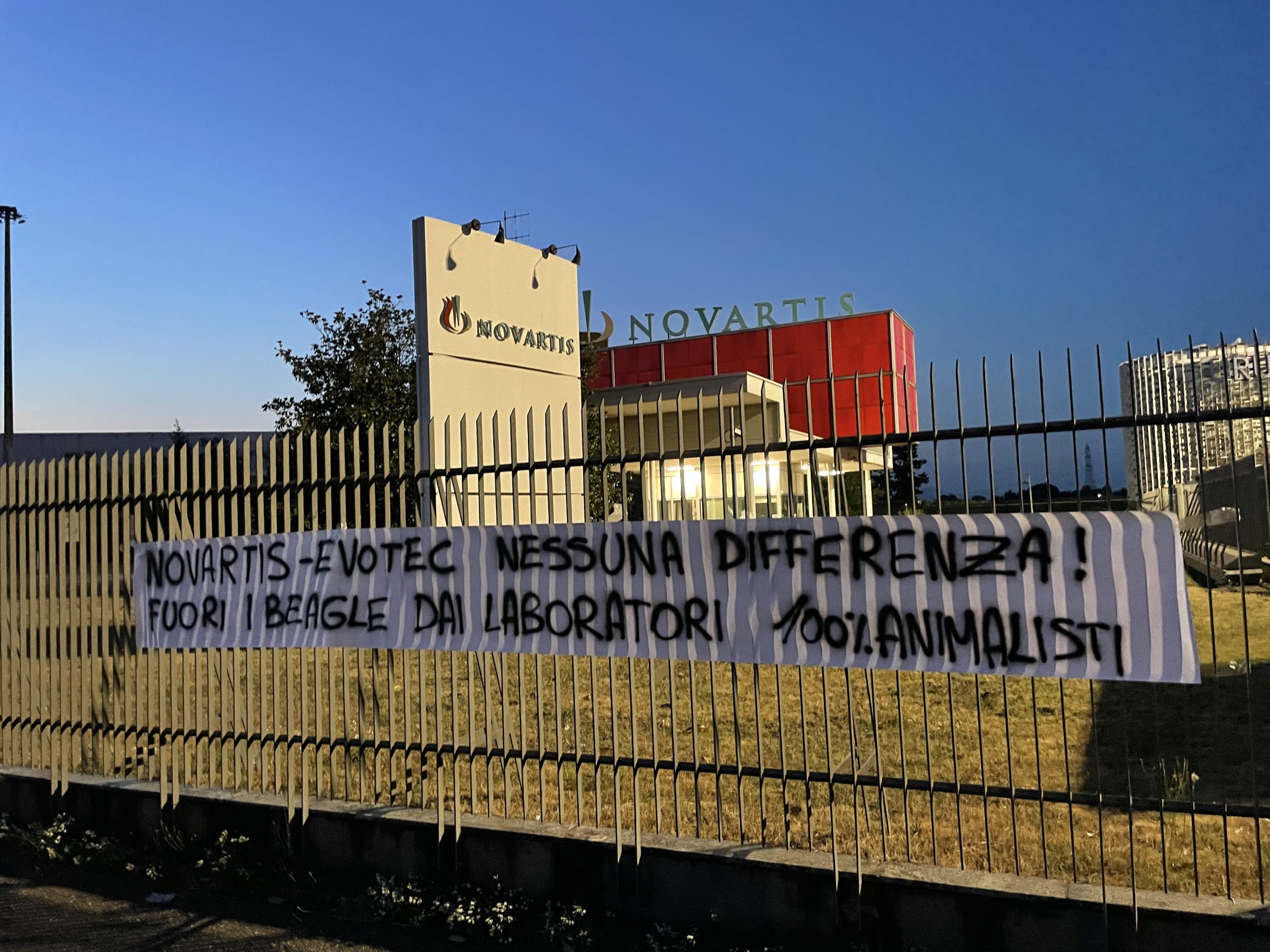Un altro striscione è stato attaccato sulla strada provinciale 527, in zona depuratore di Rescaldina. L’accusa a Novartis è di essersi alleata alla l’Evotec di via Fleming a Verona, che detiene altri animali a fini sperimentali.