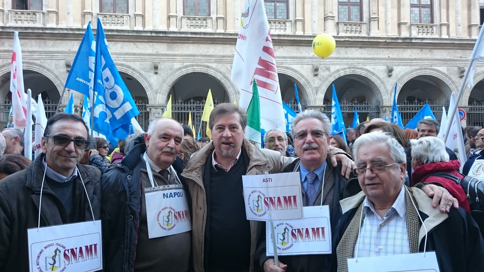 Non potrei non esserlo soprattutto per la altissima percentuale dei Medici Snami che sono intervenuti da tutta Italia, isole comprese, affrontando notevoli sacrifici, per il senso di appartenenza dimostrato nel voler essere riconoscibili per provincia e per regione. Devo riconoscere che il loro entusiasmo mi ha contagiato e sinceramente commosso per cui non finirò mai di ringraziarli. Lo Snami ha dimostrato in maniera convincente di saper “scendere in piazza” per manifestare il proprio credo.