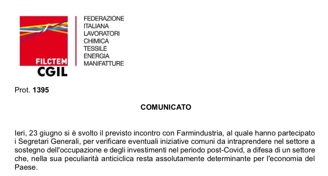 Farmindustria ha visto con grande favore l’inserimento delle attività di Informazione scientifica nell’insieme del documento della Conferenza delle Regioni “Linee guida per la riapertura delle Attività Economiche e Produttive”, che di fatto rappresenta un riconoscimento del valore di questa attività specifica.