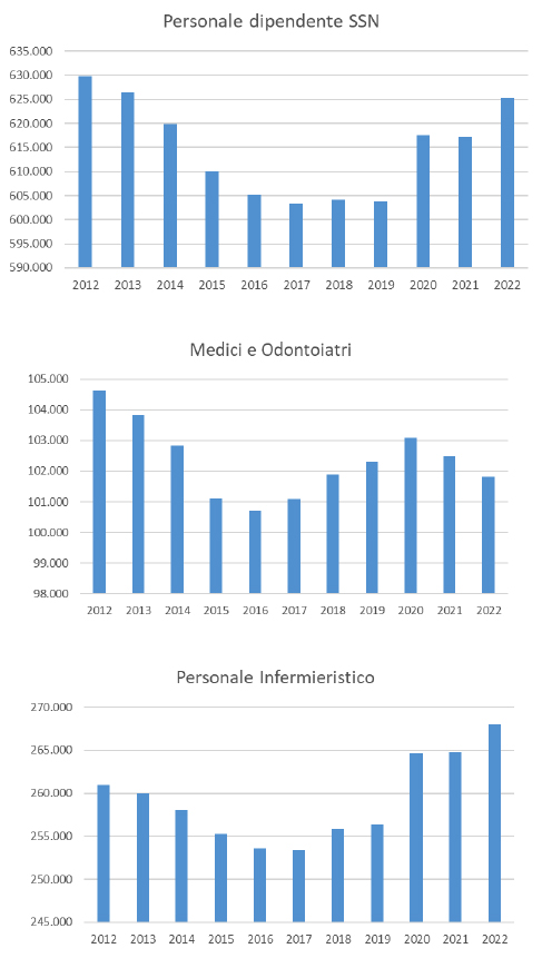 Nel 2022 sono 625.282 i dipendenti del Servizio Sanitario Nazionale, personale delle Asl e degli Istituti di