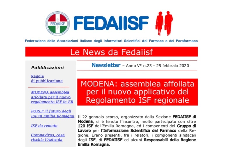 In distribuzione agli Associati le News Fedaiisf n. 23 del 25 febbraio 2020 Redazione Fedaiisf 28 Febbraio 2020