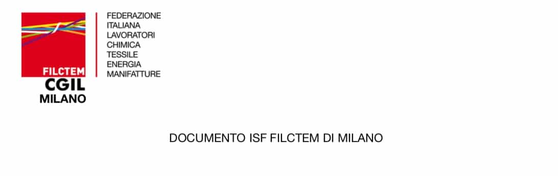Infine, la Filctem di Milano, insieme alle Rsu ISF ritiene utile offrire questo contributo alla discussione, partendo dal giudizio positivo e del tutto condivisibile sul documento sottoscritto dal coordinamento ISF Filctem nazionale riguardo a tutti i temi affrontati e sul coinvolgimento istituzionale proposto.